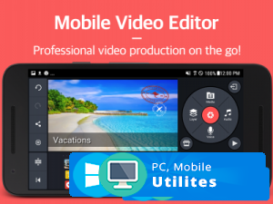 Производители KineMaster решили назвать собственный продукт полнофункциональным редактором видеофайлов для мобильных устройств Андроид. Он имеет массу неповторимых преимуществ, и не имеет каких-либо существенных минусов: поддерживает опцию тайм-ленты, а также работу с некоторыми слоями, обладает большой библиотекой аудиодорожек, где есть инструменты с точной обрезкой и так далее.