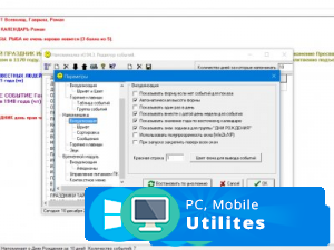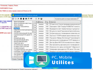 Такая утилита как «Напоминалка» проста в использовании. Она дополнена удобным редактором событий. По внешнему виду интерфейс приложения схож с обычным блокнотом для ОС «Виндовс». Главный экран показывает разные события на конкурентную дату. К числу выводимой каждый день информации относятся: дни рождения знаменитостей, именины по народному и другим календарям, важные исторические события, а также различные праздники православного, международного, национального и профессионального значения.