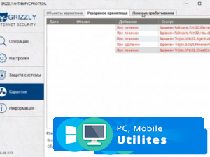 Гризли — является мощнейшим продуктом, борющимся против разных вирусов. Помогает защитить компьютер от разных вирусных угроз, к тому же все проводится в режиме реального времени. Софт проводит проверку системы автоматически, моментально выявляется разные подозрительные объекты, а также перемещает все зараженные файлы в карантин. Как только сканирование будет завершено, приложение предварительно уведомляет своих клиентов о наличии зараженных файлов, также предлагает реальную возможность их полного уничтожения. За счет этого увеличивается стабильность и работоспособность операционной системы.