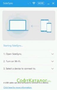 SideSync – софт от Samsung Electronics, предназначен для управления портативными девайсами Galaxy. Имеется функция обмена информацией между устройствами, а также трансляции всего происходящего на экране портативного гаджета на ПК.