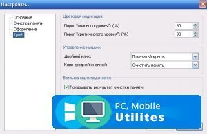 - приложение настраивает параметры настроек оперативной памяти, а также её очистки и оптимизации;