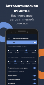 Есть опция очистки кэш памяти приложений, и удаления файлов, которые остаются в системе после деинсталляции игр и программ. Реализован внутренний планировщик задач. Например, можно настроить автоматическое сканирование и очистку файлов через определенные промежутки времени. Есть опция очистки данных браузера.