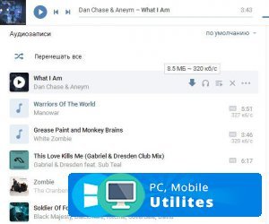 - Функция поиска аналогичных и похожих аудиозаписей;