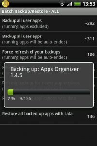 При помощи Titanium Backup, вы легко создадите любые резервные копии разных приложений, которые устанавливались на смартфоне. Есть дополнительная возможность создавать бэкап книги мобильного устройства, можно отправлять SMS, Wi-Fi AP. Легко использовать системные либо пользовательские данные, или другие важные документации.
