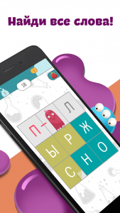 Начальный уровень содержит простые слова, но это не значит, что обнаружить их будет легко. Даже самое простое слово хорошо спрятано. На первых этапах сложность невысокая, постепенно она повышается. Для облегчения поиска существуют помощники, подсказывающие первую букву. Они выглядят как забавные монстрики. Их можно заработать, проходя уровень, либо купить.