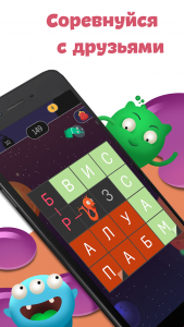 - Уровень сложности повышается постепенно: от небольшого игрового поля с простыми словами, до огромного пространства с длинными словосочетаниями.