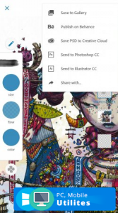 Программа Adobe Photoshop Sketch помогает в создании уникальных рисунков на мобильном устройстве. Вы в любой момент можете задать удобные настройки для карандашей, ручек, кисту, маркера, красок. Приложение всегда сохраняет картинки исключительно в хорошем качестве. Личные работы в любой момент можно разместить в Adobe CreativeSync, либо отправить в соцсети, но или на электронную почту.