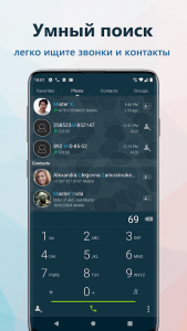 Представлен быстрый t9, который используется в истории звонков из панели управления, что является эффективным действием. Неважно ищет ли пользователь номер в недавних звонках либо карточку конкретного контакта. Умная оптимизация личных контактов позволяет сгруппировать их по разным категориям. Программа True Phone не требует много памяти личного телефона, за счет наличия дополнительно функционала, что будет радовать пользователей практически каждый день.