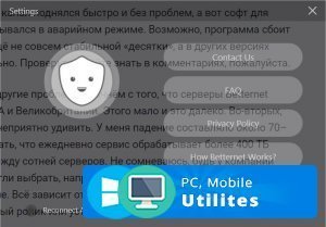 Из названия утилиты, каждому становится ясно, что создана она была, чтобы сделать мир интернета лучше. Миссия - “Дать доступ к качественному закрытому контенту, а присутствие пользователя сделать полностью анонимным”. VPN сервис бесспорно справляется с задачей номер 1, проблема возникает с сохранением анонимности. Это делает продолжительное использование программы нецелесообразным. Betternet не имеет открытых настроек. Подбор серверов, страны, порта и подключение происходит автоматически и процесс становится непрозрачным для любого пользователя.